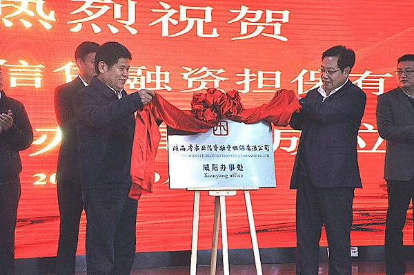 省农担董事长乔朴、市委副书记马希良为省农担咸阳办事处揭牌