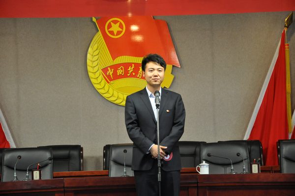 团市委领导为三等奖获得者颁奖、集团公司置业公司团支部来兴辉(左五)
