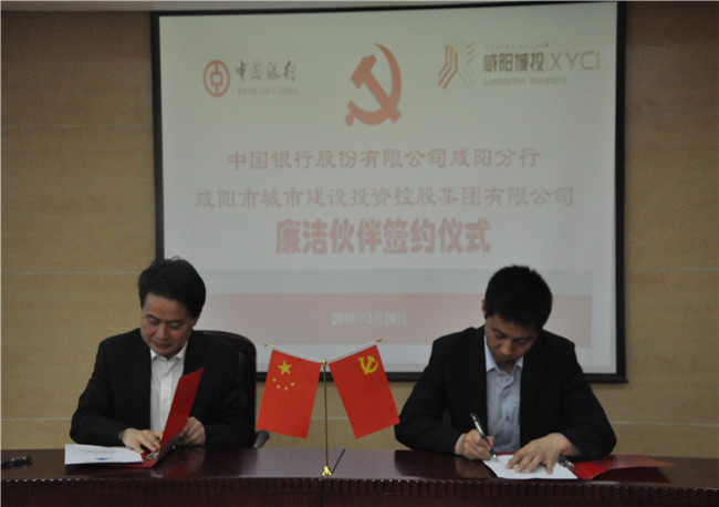 为进一步巩固落实中央八项规定精神,深化银企合作关系,促进廉洁共建与业务发展深度合作,3月28日,市城投集团党委与中国银行咸阳分行党委签订“廉洁伙伴”合作协议,这是继双方党委开展党建共建后的又一重要举措。中国银行咸阳分行党委书记、行长焦锋,党委委员、纪委书记李刚,党委委员、副行长王勇,市城投集团党委委员、纪委书记肖健等相关人员参加签约仪式。