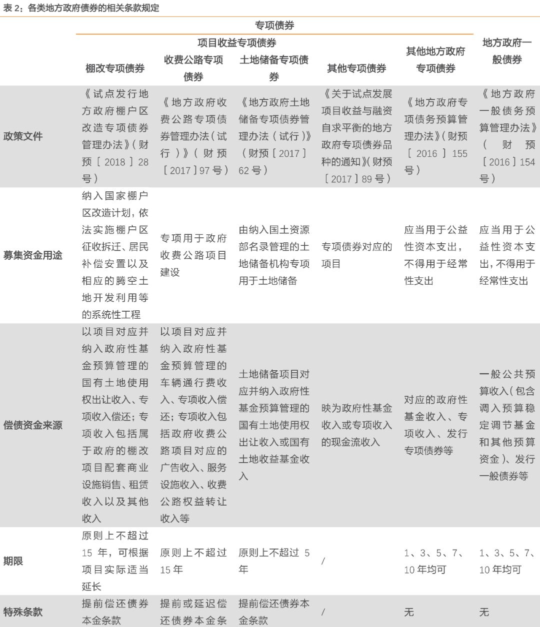 从投资的角度,棚改专项债券等项目收益专项债券均强调“项目收益与融资自求平衡”,实际上意味着,从法理上专项债券的偿债来源只有对应项目的收入,并不能完全蕴含地方政府的信用。但是棚改专项债和土储专项债具有周转偿还条款,而收费公路专项债券可以设置延迟偿还条款,均意味着项目收益专项债券具备明确的借新还旧能力(目前三类项目收益专项债券政策均为试行办法,未来有可能出现变化),使得项目收益专项债券仍然具有较强的兑付能力。