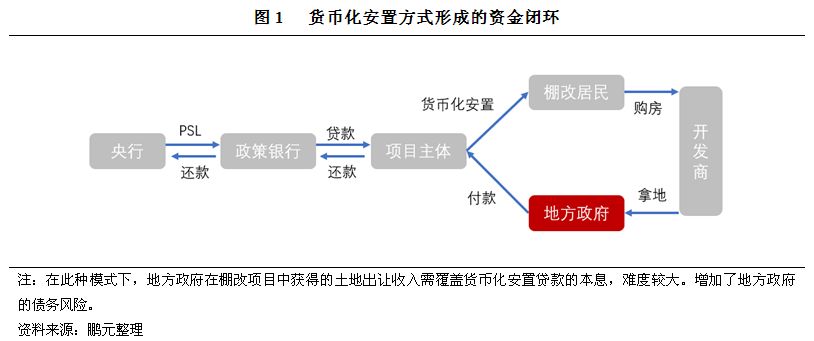 从宏观来看,棚改货币化安置对于三四线城市房地产市场去库存功不可没。棚户区改造短期内大量释放居民购房需求,而来自于PSL的货币化安置资金则直接提高了房地产到位资金,刺激房地产销售向好、房价地价全面上行,对地区当前经济稳定和未来经济发展均具有明显的拉动效应。有机构曾测算,2017年我国棚改计划开工600万套,即使按照50%安置比例中性假设,就可以实现2.55亿平方米的去库存规模。根据统计局的数据,截至2018年5月末,全国商品房待售面积5.6亿平方米,创最近46个月的新低。去库存进程告一段落。随着去库存任务的基本完成,爆发式增长的货币化安置方式带来的诸多问题开始逐渐显现。一方面,货币化方式被视作三四线城市住房价格非理性上涨的推手之一;另一方面,不规范的货币化安置项目则存在提高政府隐性债务风险的可能。一些地区不规范的货币化安置项目,本身土地出让收入无法覆盖政策性银行的贷款本息,以土地出让后的商业开发收入作为专项收入来源,实现项目的融资平衡。而事实上货币化安置过程中政府并不是商业开发主体,导致投资与收益的不匹配,地方政府财政无形中承担了相当部分的还款责任。