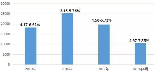 图2 2015-2018年6月城投债发行规模(亿元)及票面利率(%)