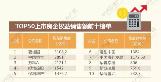 碧桂园以3108.2亿元的权益销售额高居榜首,与“榜眼”恒大相差200亿元,与“探花”万科拉开千亿差距。