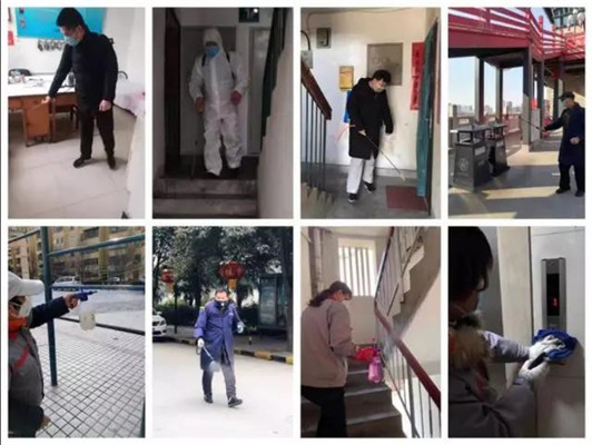 城投物业公司每日组织在岗人员对在管的9个项目的公共区域、重点部位进行全面喷洒消毒,持续开展每日两次消杀工作,并做好消杀记录。