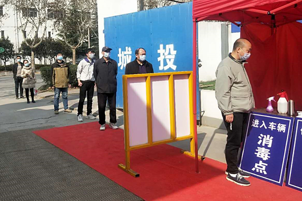 施工人员排队测温,进入工地