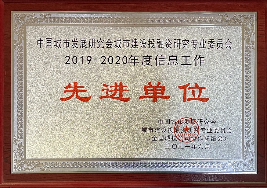 集团荣获“中国城市发展研究会城市建设投融资研究专业委员会2019-2020年度信息工作先进单位”