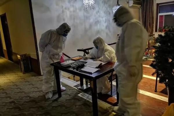 任务紧迫,刻不容缓。连一个简短的送别仪式都来不及,突击队就已开赴任务点,在火速规范做完消杀工作后,7点30分,第一批4名密切接触者入住。突击队顾不上休整,又立刻投入到对入住者的信息登记和各项检测工作中。经检测,入住者中1人有发热情况,给突击队员的安全带来了极大的隐患,但他们依然严格按照流程,妥善安置了入住者后,并进一步加强对发热人员的观察。