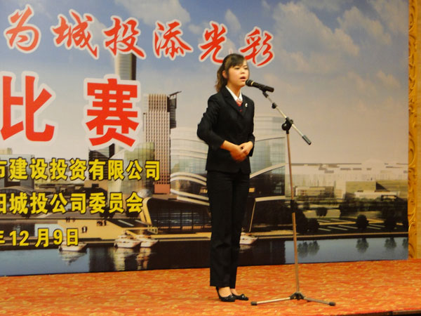 颁奖完毕后,李总做了总结性讲话。他首先向各位嘉宾的到来表示欢迎。他讲到,以上16名选手通过精彩的演讲对一二·九学生爱国运动进行了诠释,展现了城投人“阳光、上进、有责任”的风采,青年同志的内心流露使他深受感动并倍感动力。李总指出,咸阳城投正处战略转型的关键阶段,公司的核心业务刚刚起步、内控制度逐步完善、人力资源管理也正在探寻公司效益和个人发展最佳切入点,青年员工作为城投公司的主力军,要以塑造“阳光、上进、有责任”城投特色文化为己任,做一个充满朝气、积极进取的人,做一个对家庭、对社会有用的人,要学会把人生职业生涯规划与城投公司发展规划相结合,把个人追求的品位生活与公司的发展业绩相结合,通过个人工作岗位的不懈努力,实现个人目标与公司目标的同步实现。李总表示,此次演讲比赛旨在培养广大干部员工对公司的认同感和归属感,同时激发潜力使其能以更加阳光积极、团结进取的面貌投身工作。人力资源将是咸阳城投未来跨越式发展,做关天经济区最具成长性、最具发展潜力的城市经营商的根本保证,公司将从岗位设计、制度建设等方面为广大青年员工同志提供更加便利、更为广阔的展现舞台,团委作为公司青年员工的舞台之一,要充分利用资源,从这方面讲,这次的主题演讲比赛取得了圆满成功。