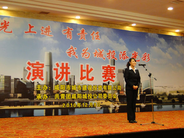 12月9日,为弘扬一二·九运动爱国主义精神,激发广大青年员工干事创业的热情,展现咸阳城投集团各条战线青年员工的新风貌,增强企业凝聚力,深入贯彻李忠平同志关于塑造“阳光、上进、有责任”城投特色文化的指示精神,活跃企业文化生活,使广大干部员工以更加饱满的热情投身到工作上去,在咸阳城投团委的组织下,咸阳城投系统纪念一二·九运动主题演讲比赛在国贸大酒店五楼国会厅隆重举行。来自市城投集团公司、市信用担保公司、市泾渭建设公司、市城投置业公司、市能源开发公司、市城投物业公司等六个单位的16名选手参加了比赛,共有100多名干部职工观看了演讲比赛。市城投公司党委书记、董事长、总经理李忠平携全体领导班子出席了此次比赛。咸阳日报社社长、总编王福海、咸阳电视台副台长王飞、共青团咸阳市委副书记林梅、咸阳电视台资深编辑王遂社、工农部副部长刘杰应邀参加并担任此次演讲比赛的评委。